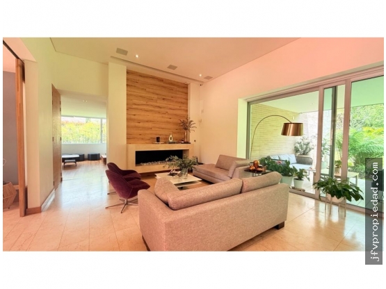• Espacios Sociales Multipropósito: La casa fluye entre un ingreso con oficina independientesala y comedor principal con domótica (video beam integrado)cocina integral abierta tipo americana totalmente equipadacomedor auxiliar, sala auxiliar y un espacio flexible para biblioteca/zona de TV.